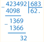683 ∙ 620 + 32 = 423 460 + 32