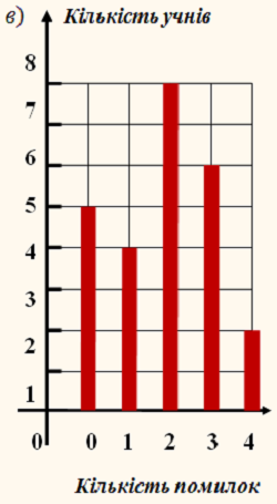 3. За результатами тестування з алгебри 25 учнів дев'ятого класу склали таблицю, у якій відобразили розподіл кількості помилок, зроблених одним учнем: